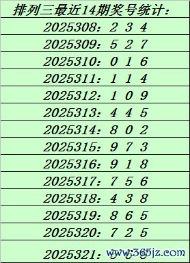 上期转头:胪列三第2025321期奖号:568。和值19,跨度3。